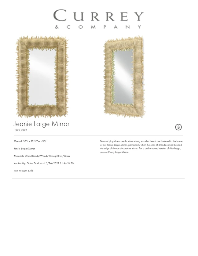 Be the first to review “Currey And Company Jeanie Large Mirror Beige New Arrivals” Cancel reply