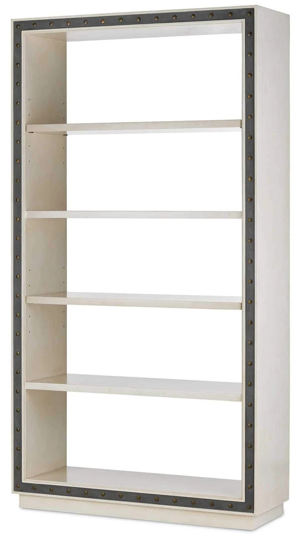 The Bristol Etagere from Currey and Company is composed of a stunning mix of mahogany solids and engineered hardwoods with finishes of faux bone, vintage steel and antique brass. The hammered nail heads enhance the meticulous design of this piece. The Bristol will introduce a luxe vibe to the urban oasis and the country home alike. Design details include two fixed shelves, two adjustable shelves and an anti-tip kit.