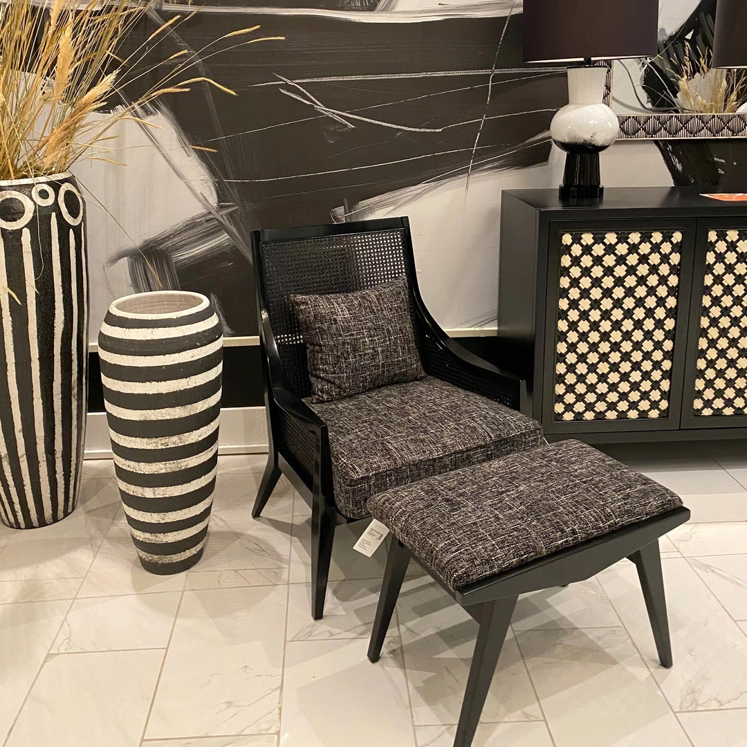 The Caledon Urn from Currey and Company is made of hand-thrown terracotta with a surface treatment meant to give the black and white urn a powerful patina. The stripes along the surface are geometrically rich and the perfect complement for traditional and contemporary spaces alike. Use the Caledon as a tall vase on your entry or dining room table or as a showstopping centerpiece.