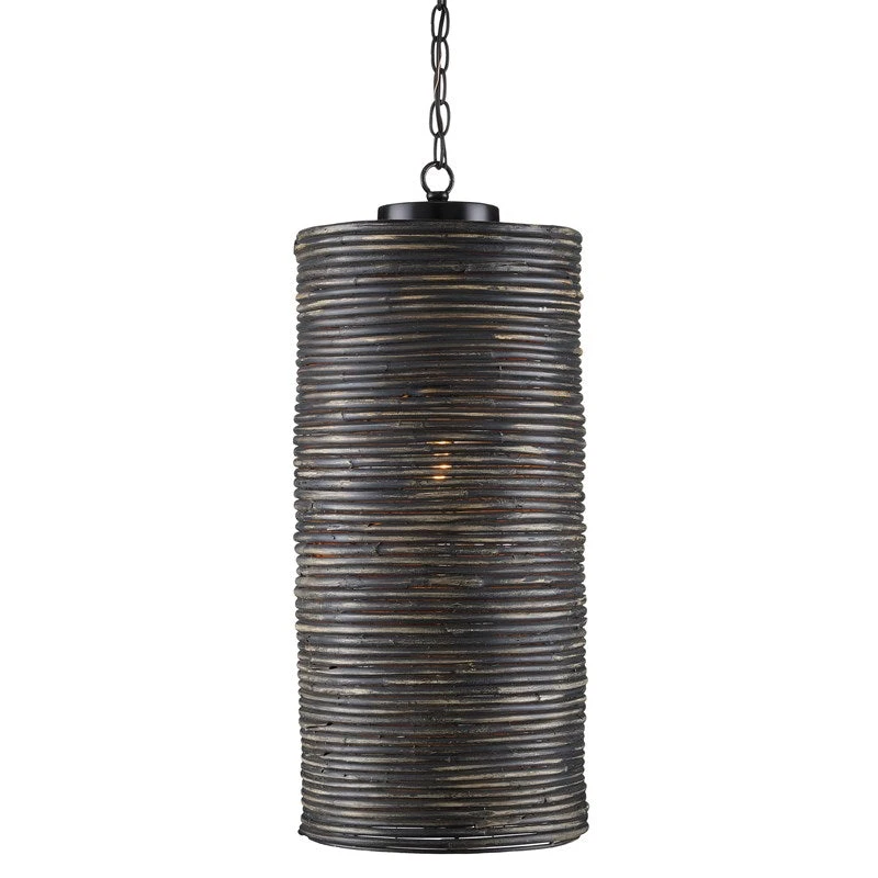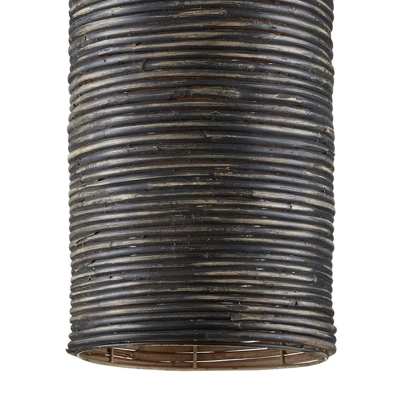 The Nagano Pendant in Black from Currey and Company brings an edge to a space thanks to its shade made of natural painted rattan. The texture was achieved when a rubbed-through treatment was applied to warm the illumination glowing through the wrapped reeds. The hardware is made of iron in a satin black finish and the rub on the cane is a gray wash finish. Ian Thornton designed this rough luxe black pendant that will span stylistic themes from modern farmhouse to industrial chic.