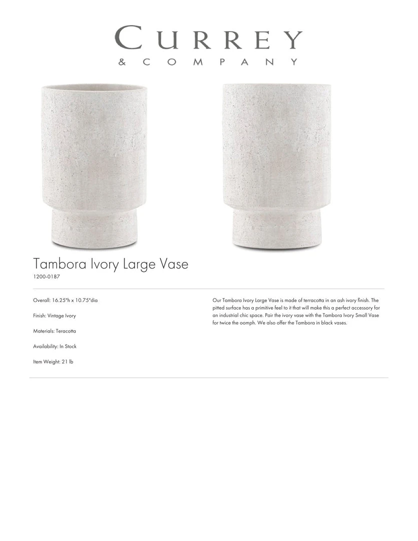 Currey And Company Tambora Vase Ivory Large New Arrivals
