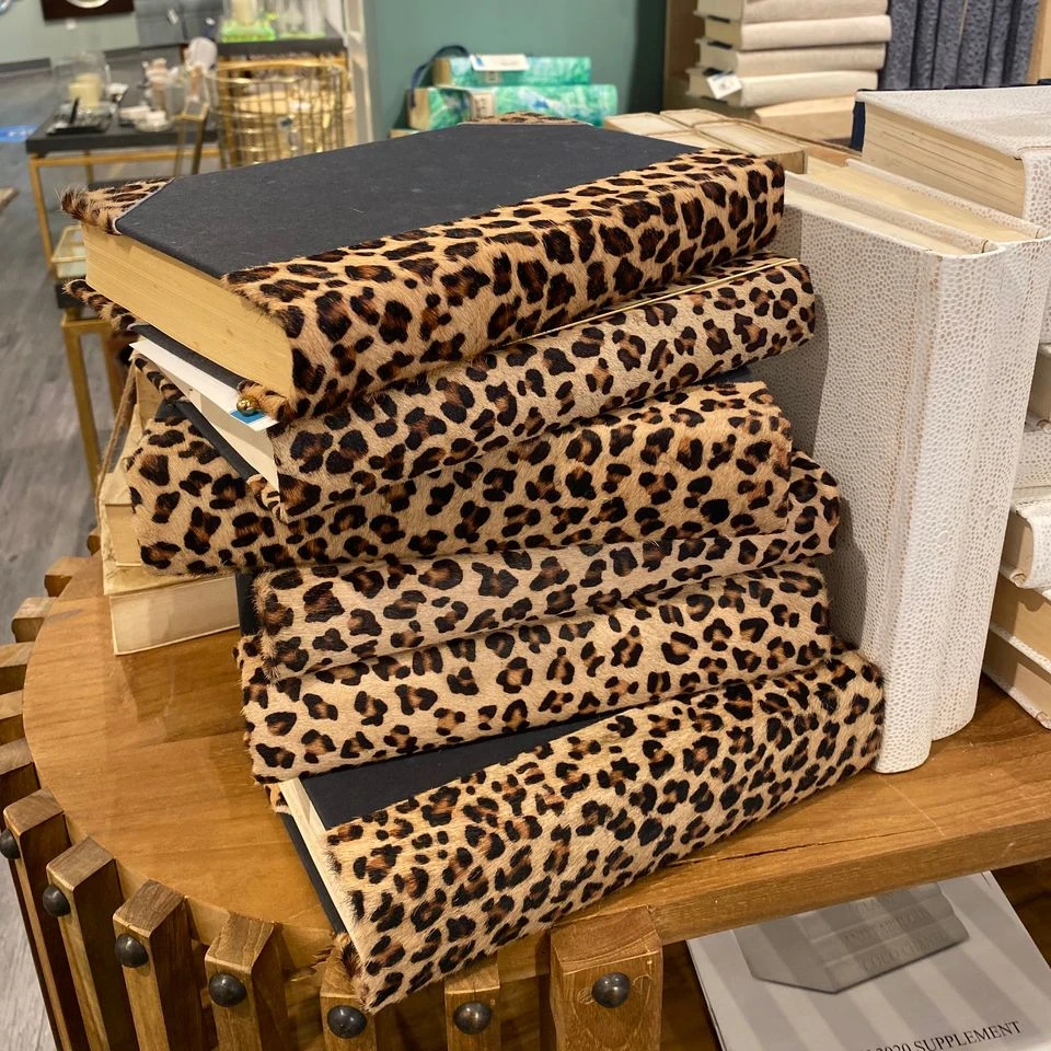 The Cheetah Hide Book Set of Six delivers chic sophistication to your tabletops, bookshelves, and desktops. These hand-made books feature cheetah print hair on hide covers and parchment paper inside. The high-end look is on-trend and modern. *Made to Order – Please allow 4 weeks.
