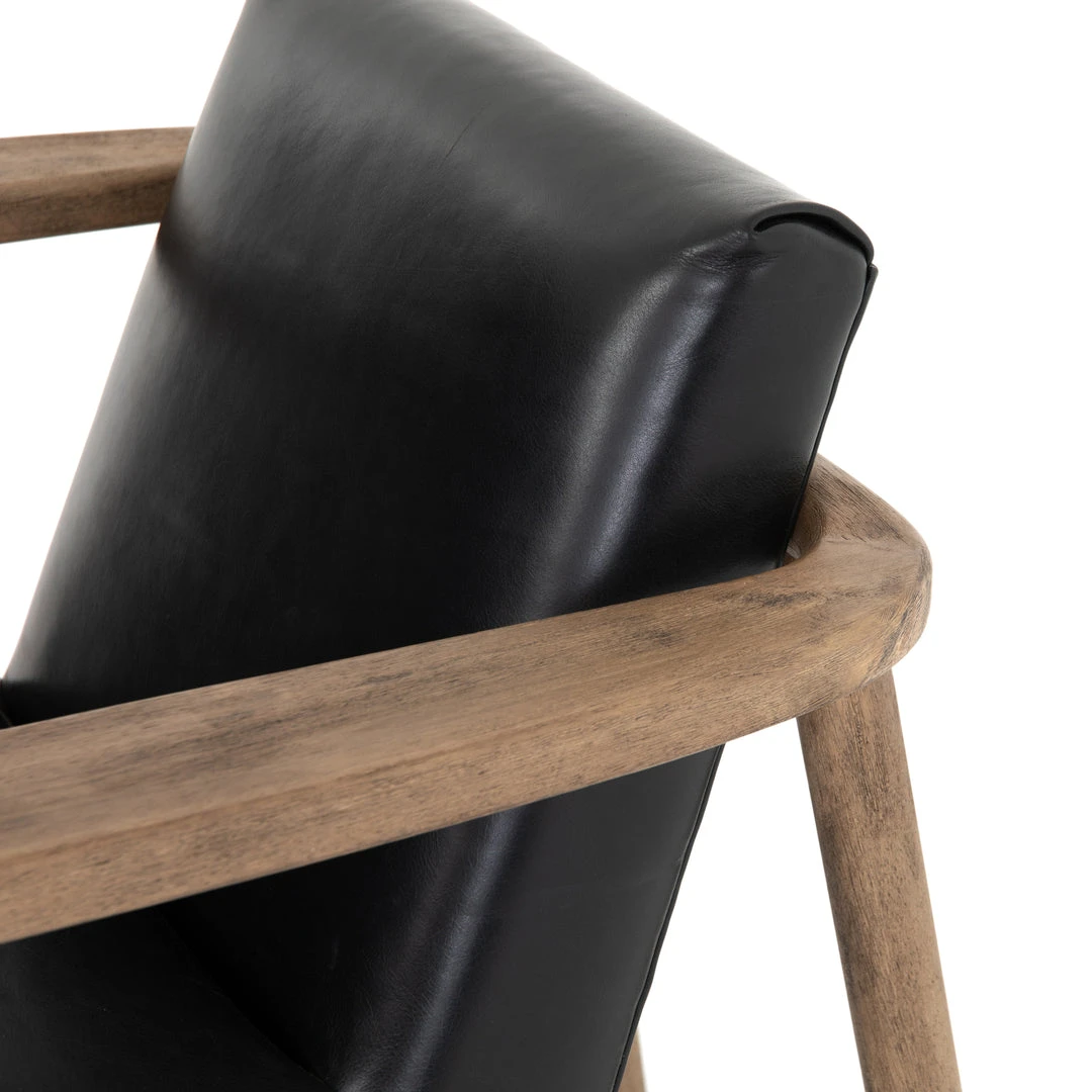 Four Hands presents the classic look of black and tan with the Arnett Chair in Dakota Black. The lean, black top grain leather cradles into a natural parawood framing, for a stylishly clean look with high contrast and a mid-century vibe. Place the Arnett in pairs in the office, den or library for high style and soft comfort.