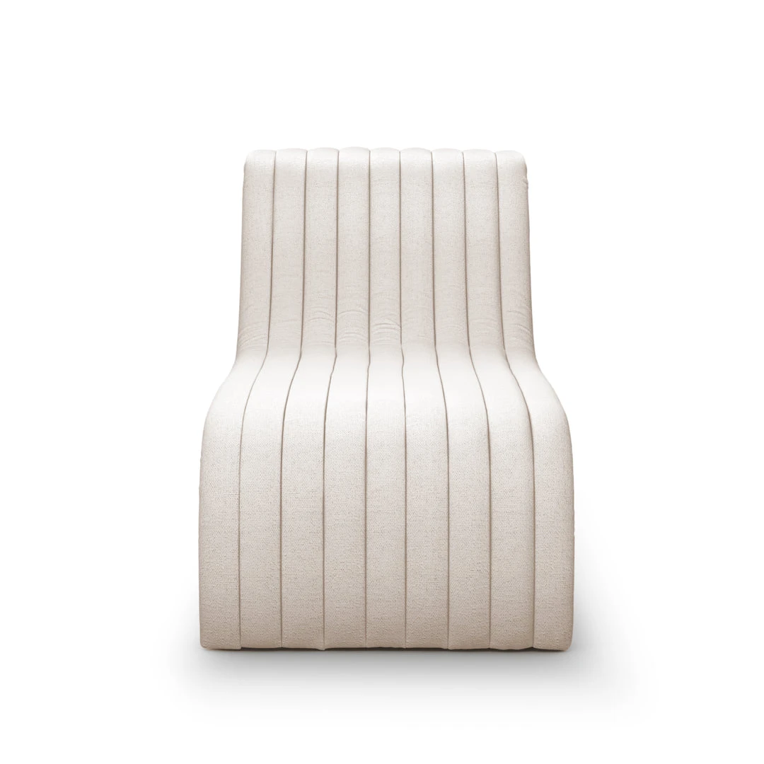 The Augustine Chaise Lounge in Dover Crescent from Four Hands features a modern take on the classic chaise. Crisp high-performance fabric features linear channeling for texture and comfort alike. This luxurious piece infuses comfort and style into a variety of spaces such as bedrooms, offices, and entryways.