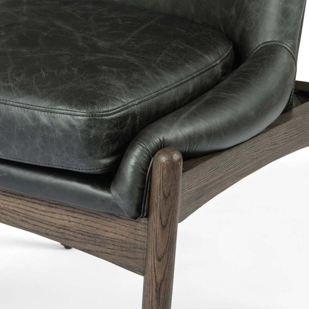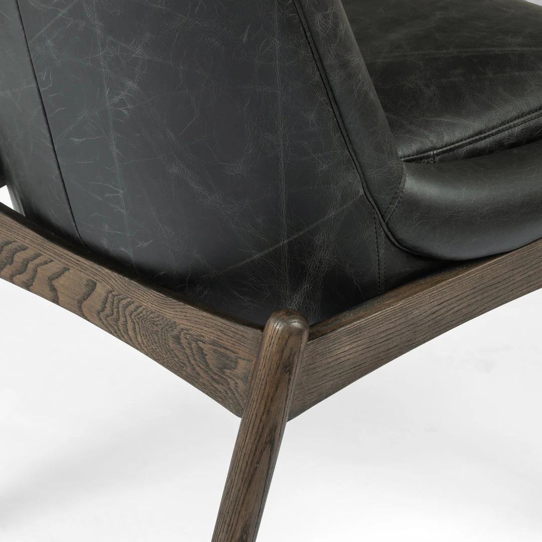 The Braden Dining Chair in Durango Smoke Leather from Four Hands offers Mid-century modern sophistication to your home. An arrestingly detailed nettle wood frame adds an architectural feel to a precisely shaped chair upholstered in smoky-black top-grain leather.