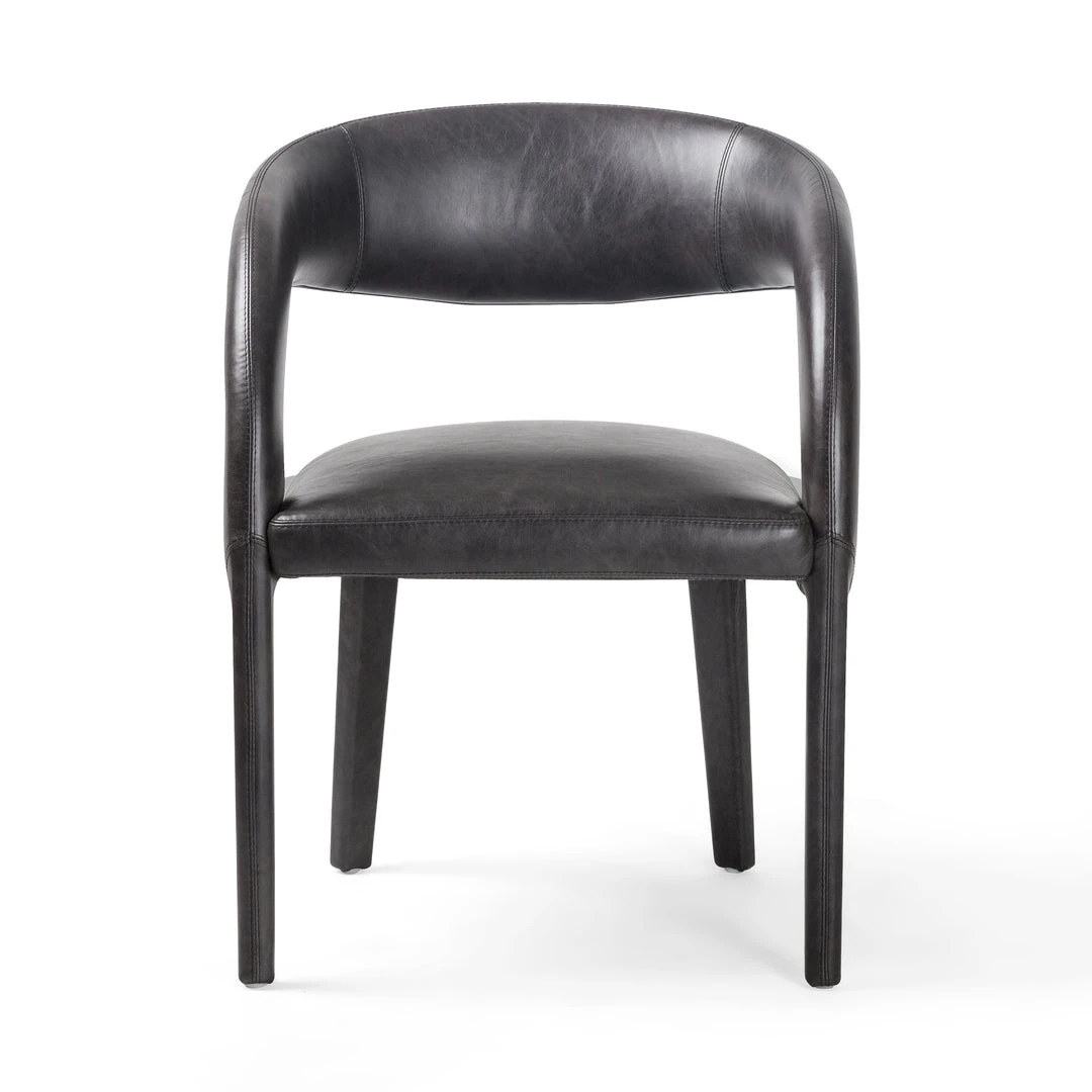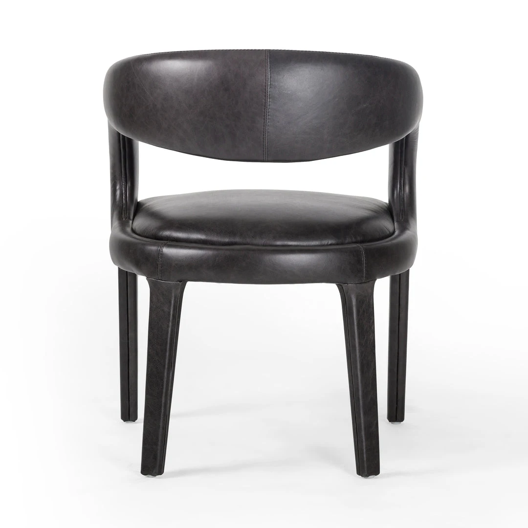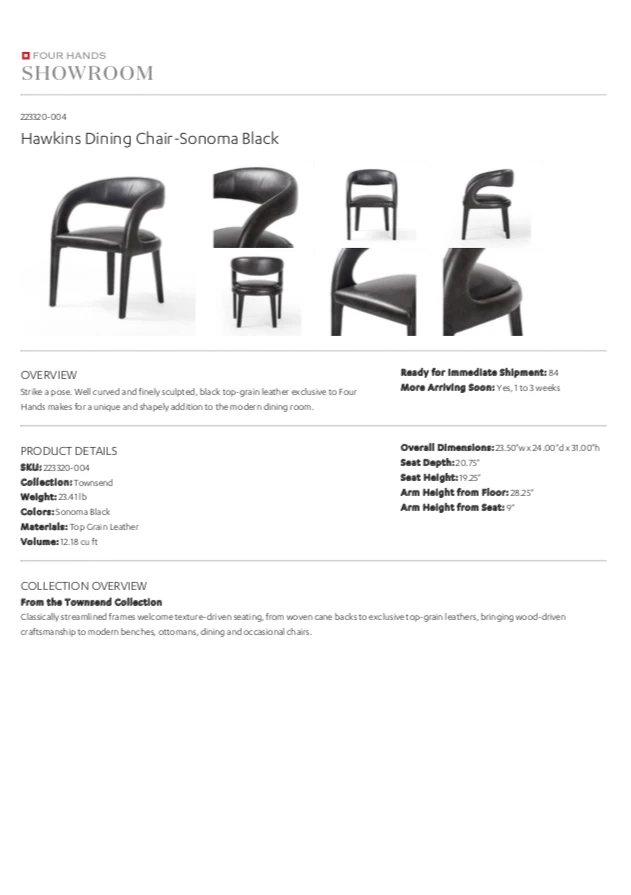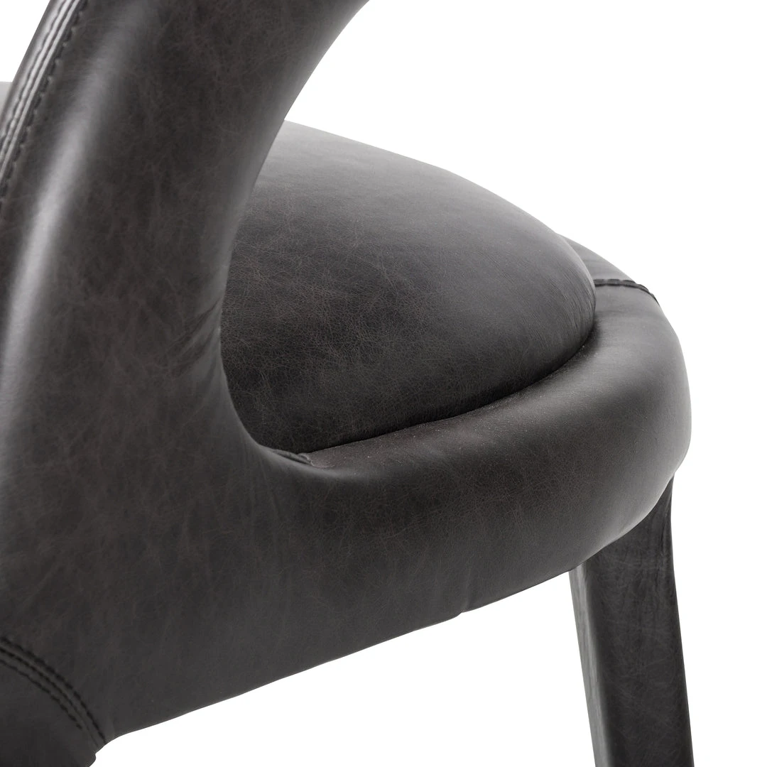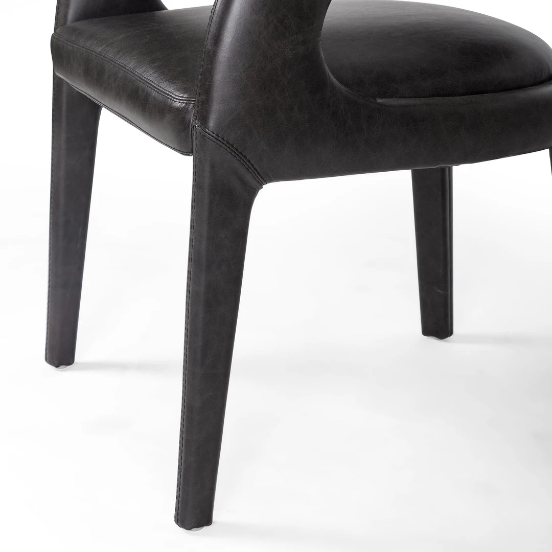 Strike a pose. The Hawkins Dining Chair in Sonoma Black features well-curved and finely sculpted, black top-grain leather exclusive to Four Hands. The Hawkins makes for a unique and shapely addition to the modern dining room.