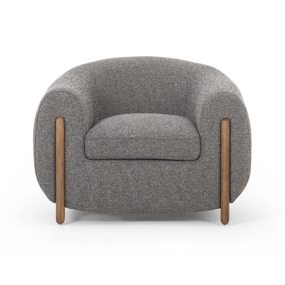 A fresh take on the traditional tub chair, the Lyla Chair in Capri Ebony from Four Hands features exaggerated depth for drama and comfort. Solid rubberwood legs intersect ivory upholstery for clean contrast of color and scale.