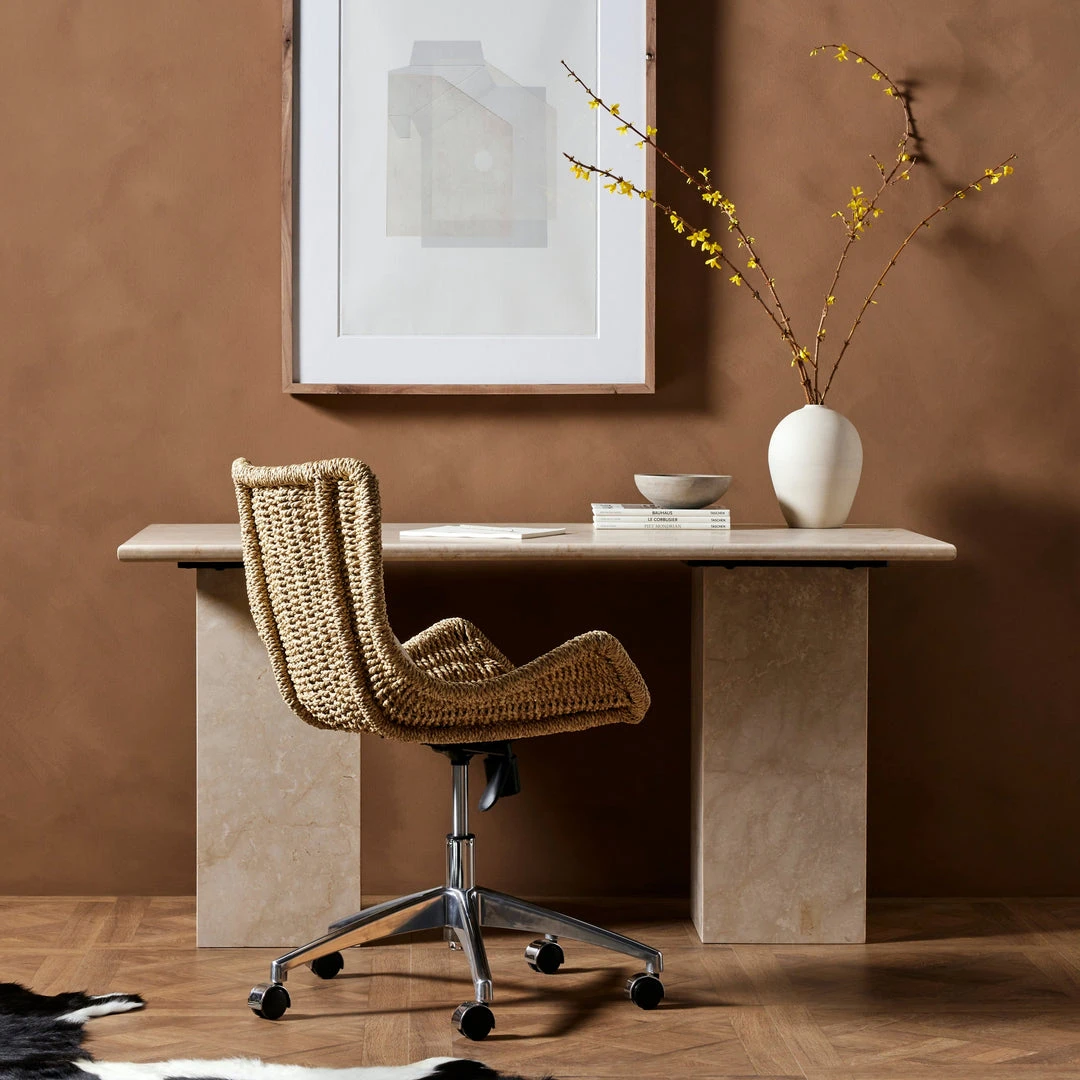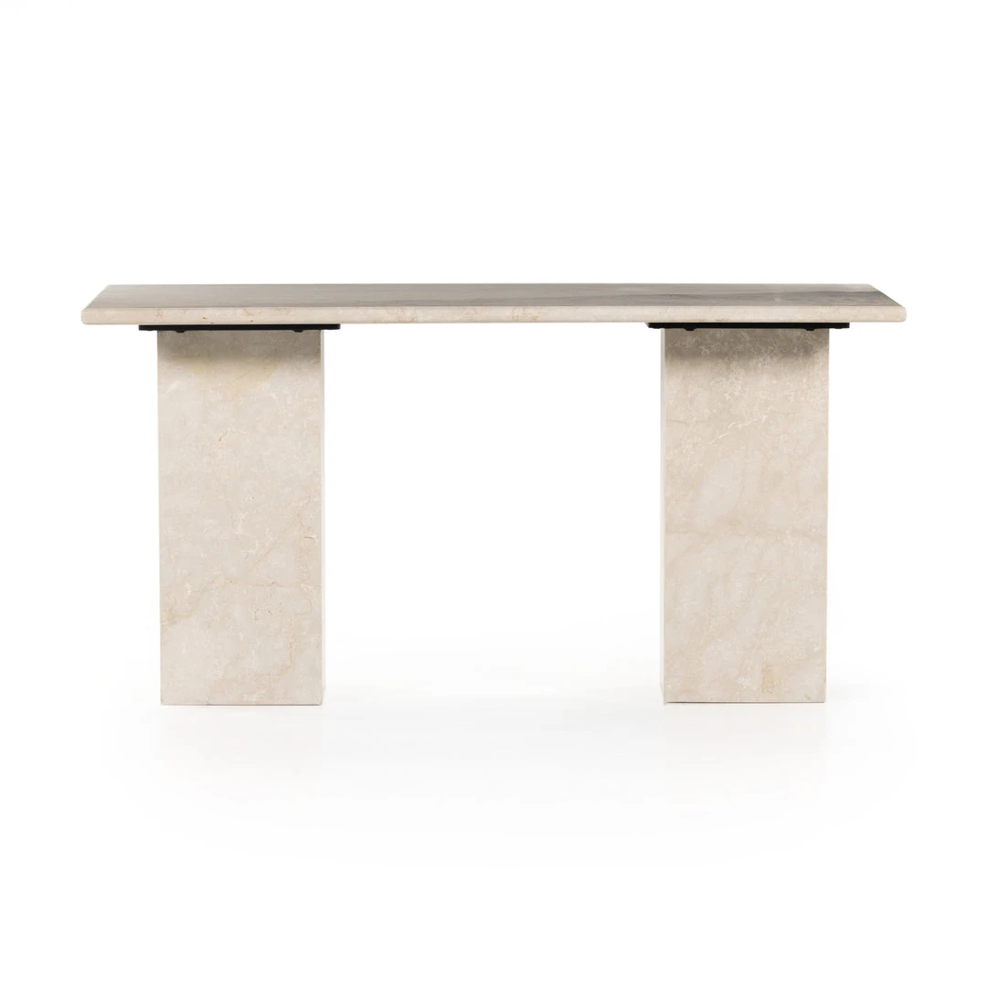 Inspired by the grand Italian design of the 1970s, the Arum Desk in Cream Marble from Four Hands delivers the ultimate modern style to any space. Made entirely from solid marble in a versatile creamy white, a stately, sculptural desk makes a major style statement.