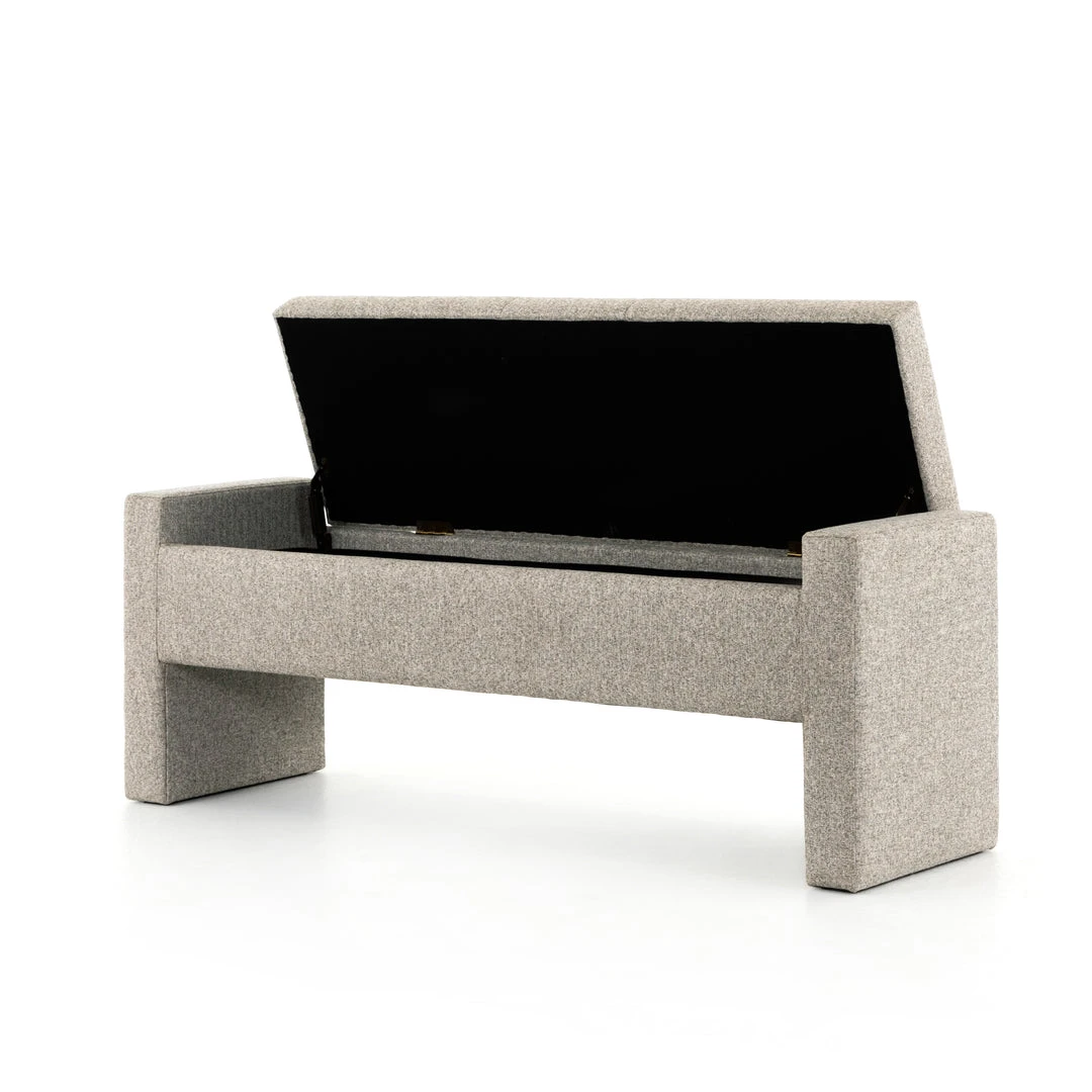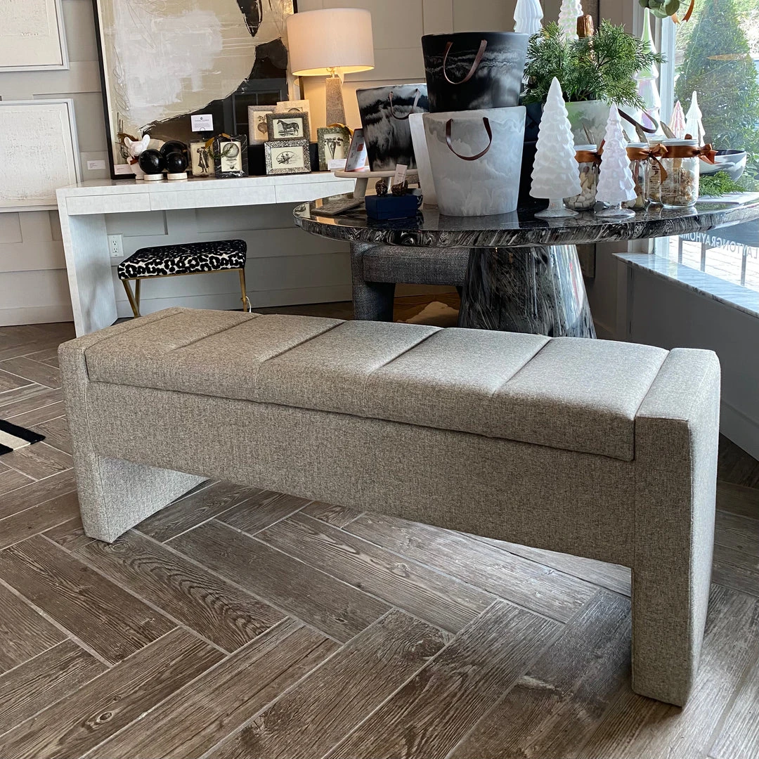 For clever practicality, the Parker Bench in Orly Natural from Four Hands opens to reveal trunk-style storage. Perfect for the bedroom or entryway, or as a stylish piano bench for sheet music storage, the parker delivers chic functionality to your home.