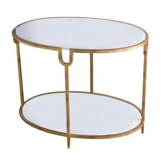 The Global Views delivers the Iron And Stone Side Table, Supported by a hammered iron, gold painted frame, this transitional piece will create a luxuriously delightful ambiance in your home. Classic elegance exudes from the Iron and Stone Side Table from Global Views which features a beautiful marble top and lower shelf.