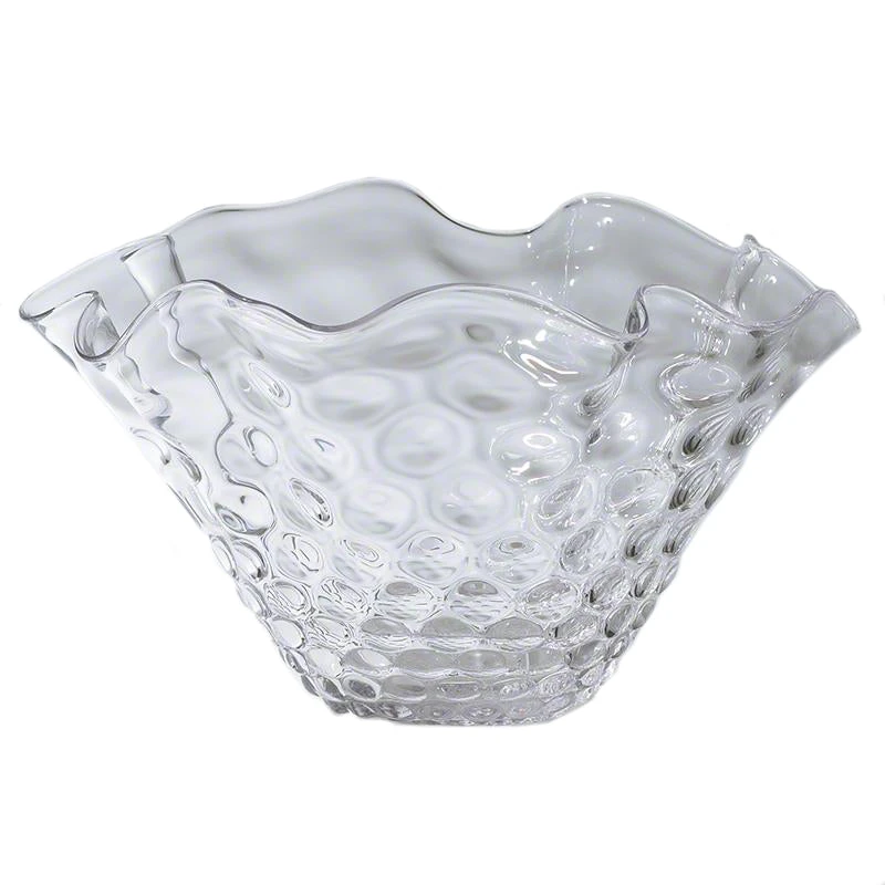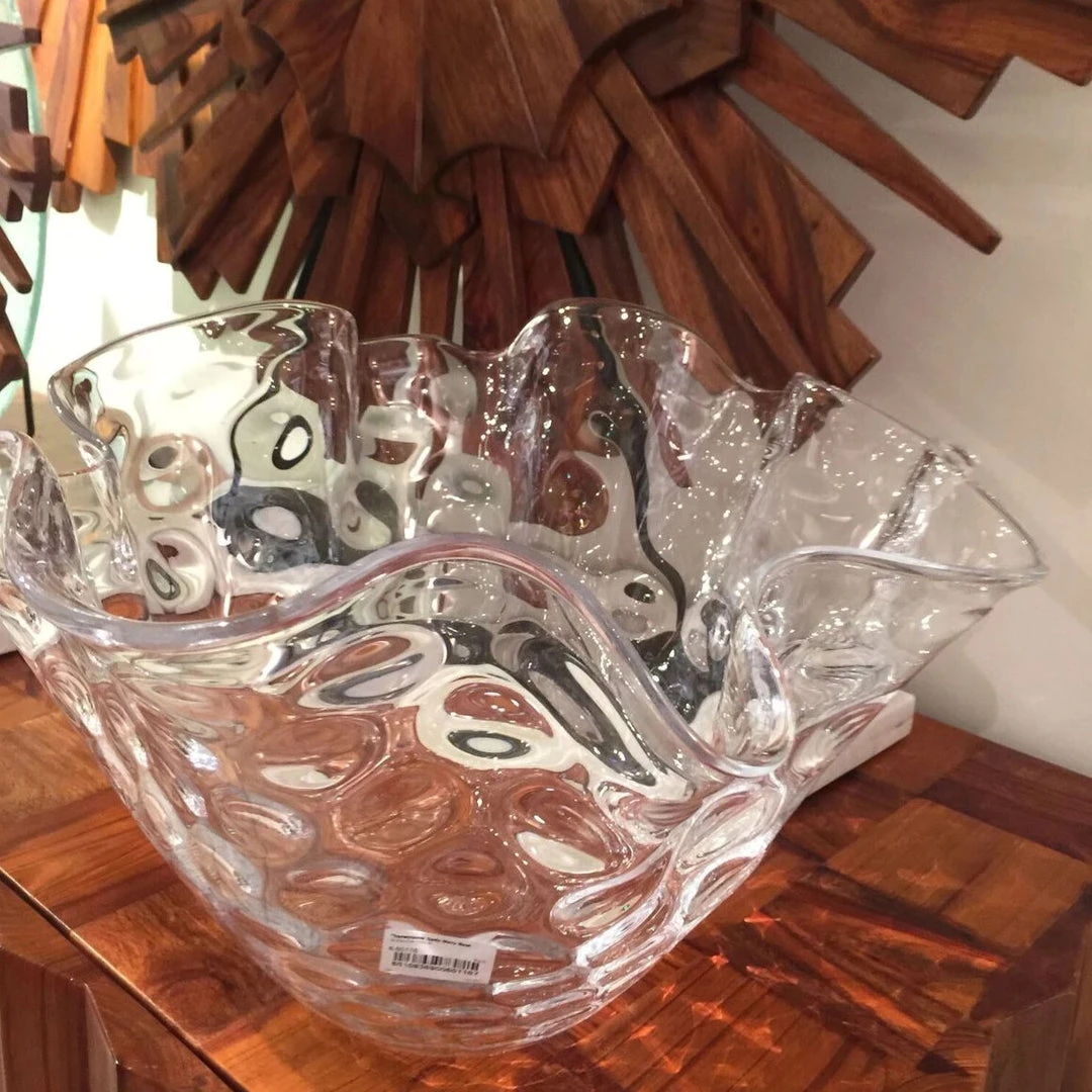 The Honeycomb Optic Wavy Bowl from Global Views is expertly handcrafted using a combination of ancient and modern techniques. This organically shaped bowl captures elegant functionality and can work as a decorative piece or for entertaining. Place this beautiful glass bowl filled with fruit on your kitchen island or filled with your favorite flowers on your coffee table.