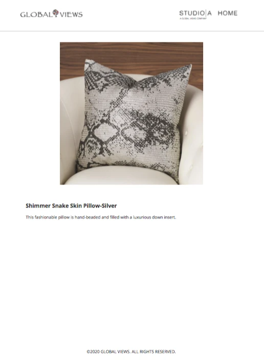 Be the first to review “Global Views Shimmer Snake Skin Pillow Silver” Cancel reply