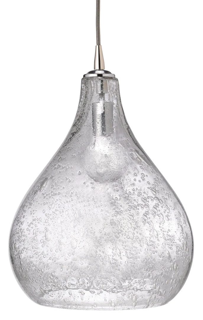 The Curved Pendant Pendant from Jamie Young is showcased in a seeded glass with a sleek nickel finish.  Available in two sizes, the glass illuminates light elegantly making this simple design ideal for any room in your home.  Pendants like the Curved Pendant from Jamie Young are a perfect fit placed in multiples in the kitchen, bathroom, or entryway. Â