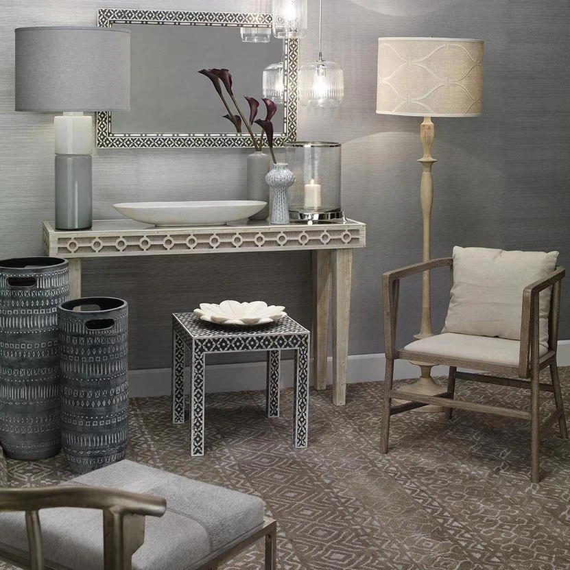 The Evelyn Side Table from Jamie Young Company features handcrafted Mother of Pearl inlaid in a stunning design in an elegant grey and white pattern. Used as a living room side table or a bedside table, the Evelyn delivers the ideal choice for living rooms, bedrooms or home offices. *Finish & pattern may vary slightly.