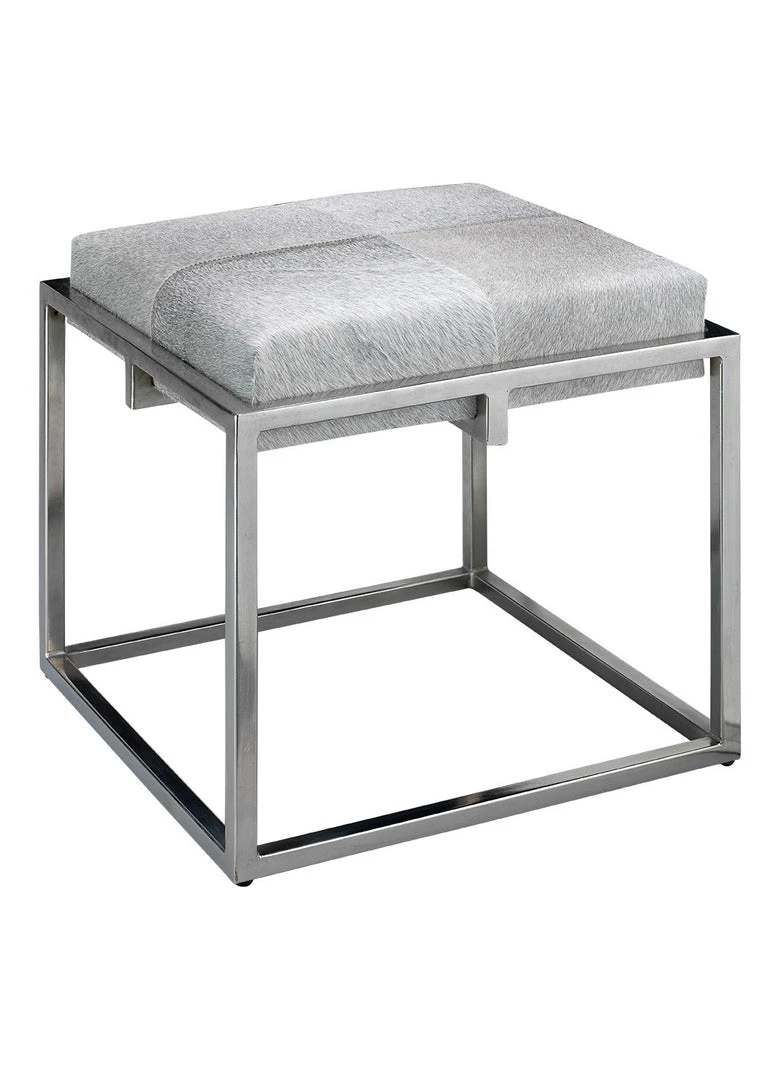 The Jamie Young Company Shelby Stool in Grey Hide features a square nickel frame topped with a neutral grey cowhide cushion. Stools like this chic seating offer a timeless style that works with many of today’s modern interiors. Add the perfect touch to your home with the Shelby Stool in Grey Hide from Jamie Young Company while providing extra seating with an authentic classic vibe!