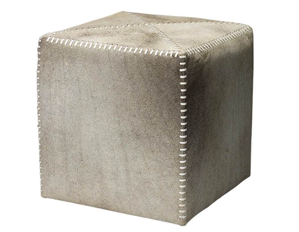 The Jamie Young Company Grey Hide Ottoman features soft shades of gray leather accented with a white stitching design. Ottomans such as the Grey Hide Ottoman offer comfort while working beautifully with a myriad of home decor schemes. Add a rich ambiance to your existing decor with extra seating like the Grey Hide Ottoman from Jamie Young Company.