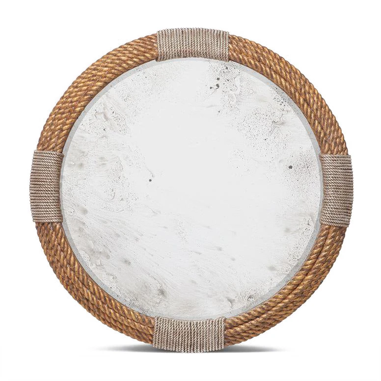 The Alexander Mirror in Gold Rope from Made Goods brings a distinct seafaring touch to your home. With an antiqued finish on its surface and natural braided rope detailing, this round mirror gives the feeling of looking out a ship’s portal. Create a sophisticated nautical vibe in any room with this unique mirror.