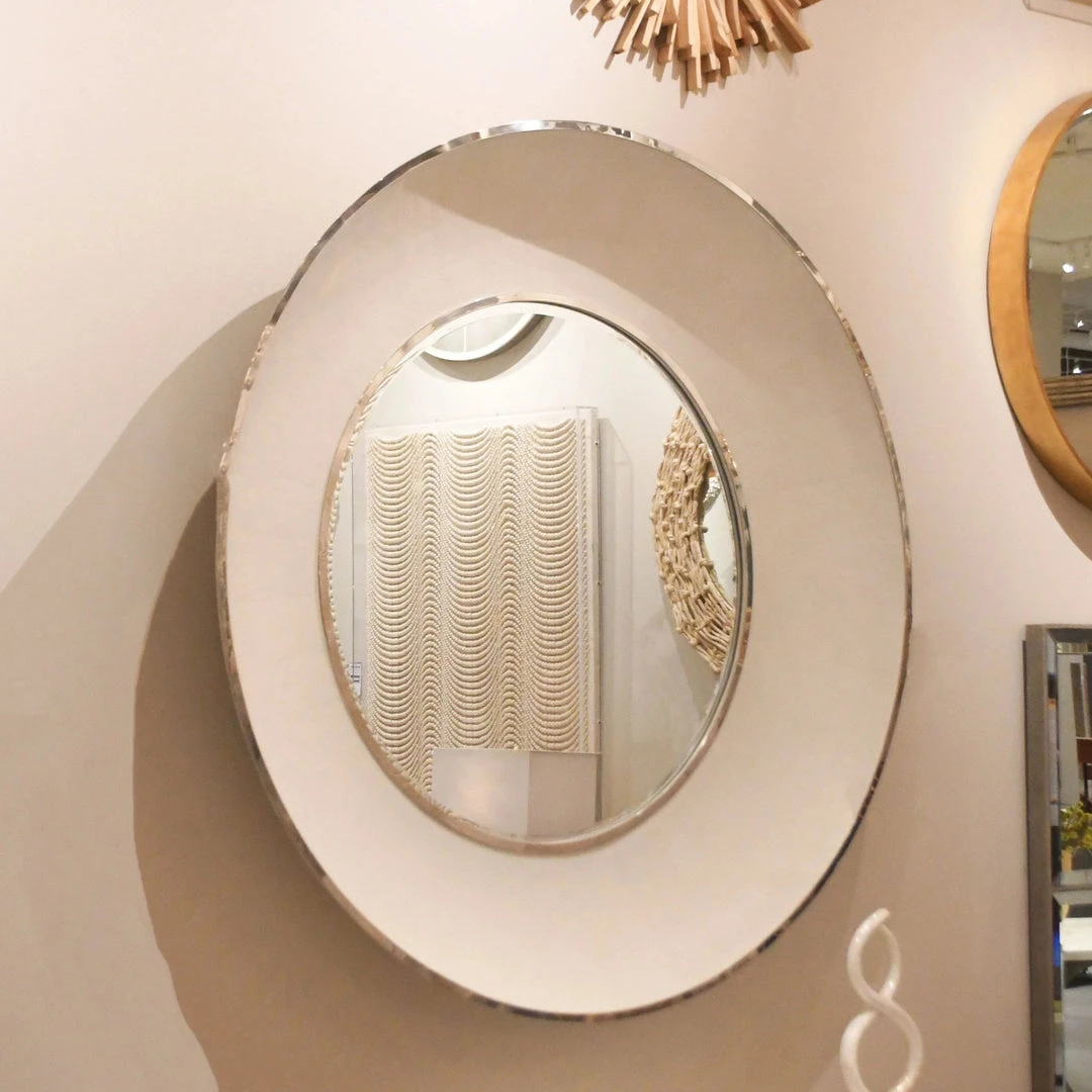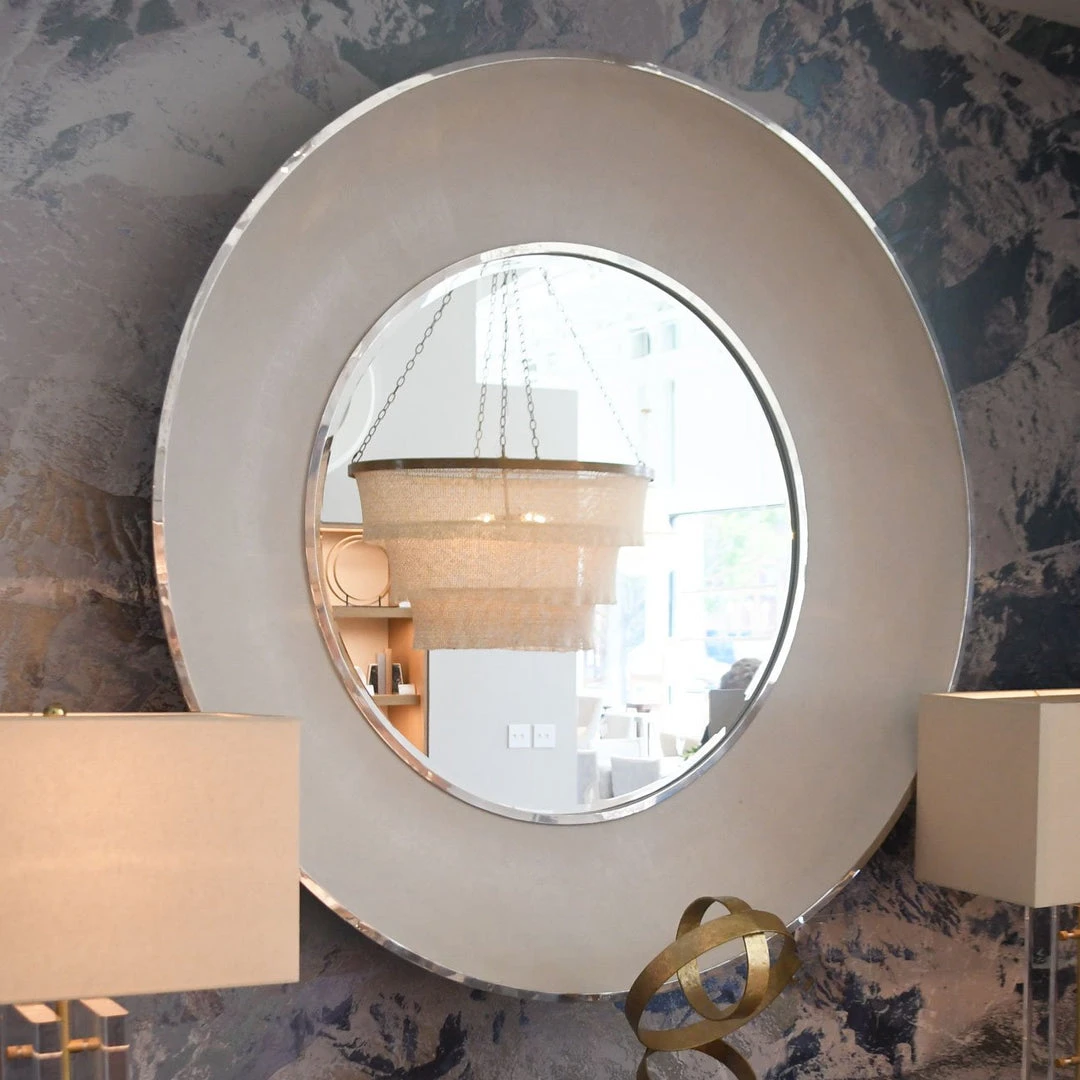 | Materials | Snow Faux Shagreen; Silver Metal; Beveled Mirror |
