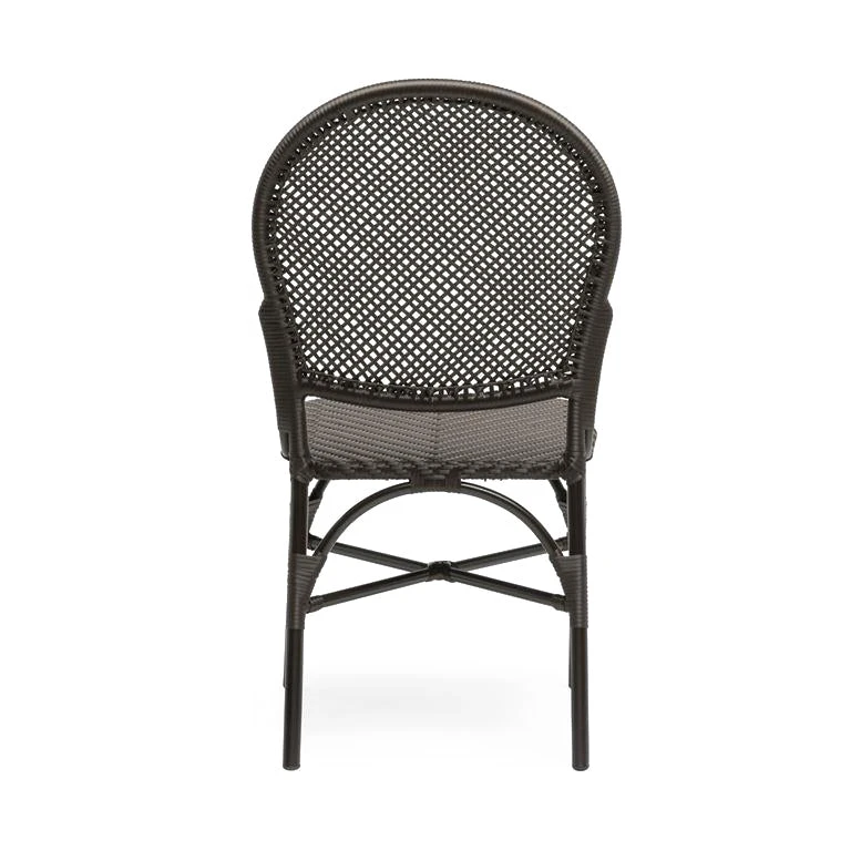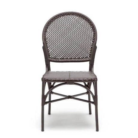 The Made Goods Donovan Side Chair in brown features gracious curves that round out this modern side chair. Expert construction, perfect pitch, and a woven seat and back offer a French Bistro style, making this brown seating the perfect accent when used as a living room side chair or dining room side chair. Suitable as outdoor seating.