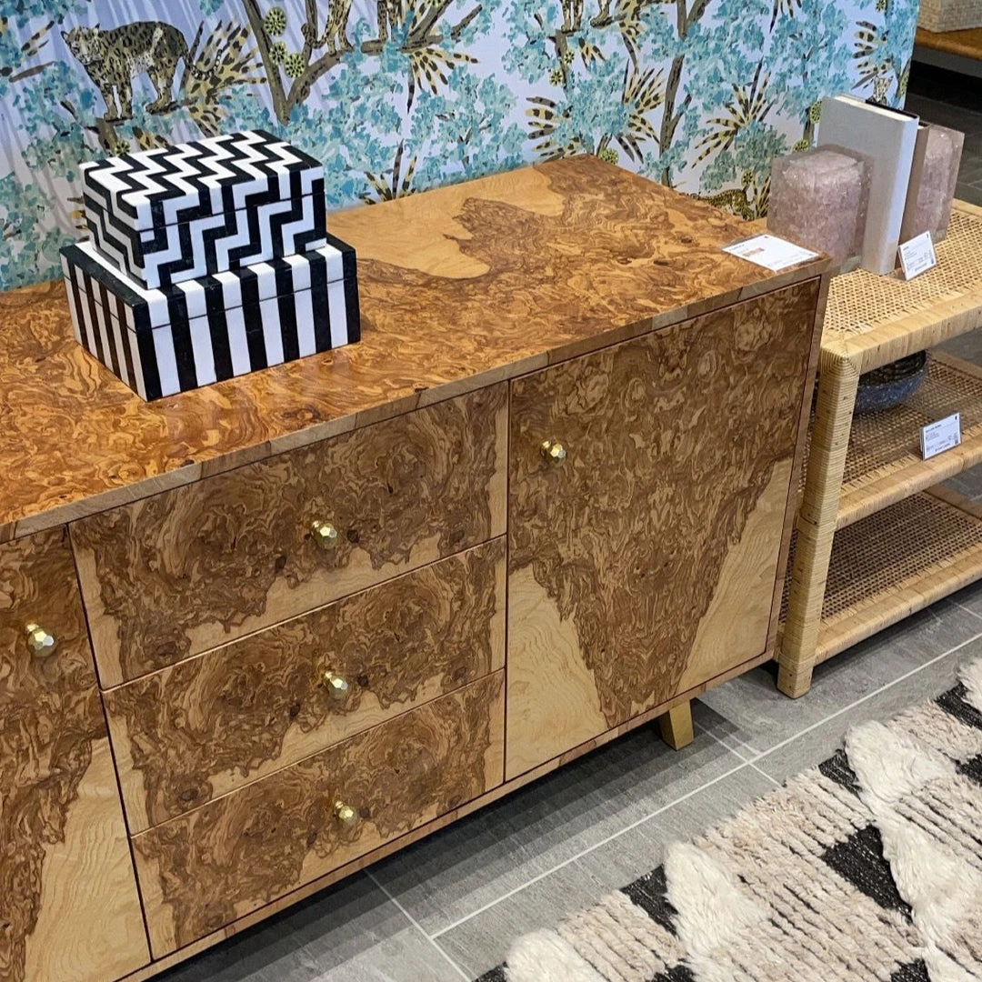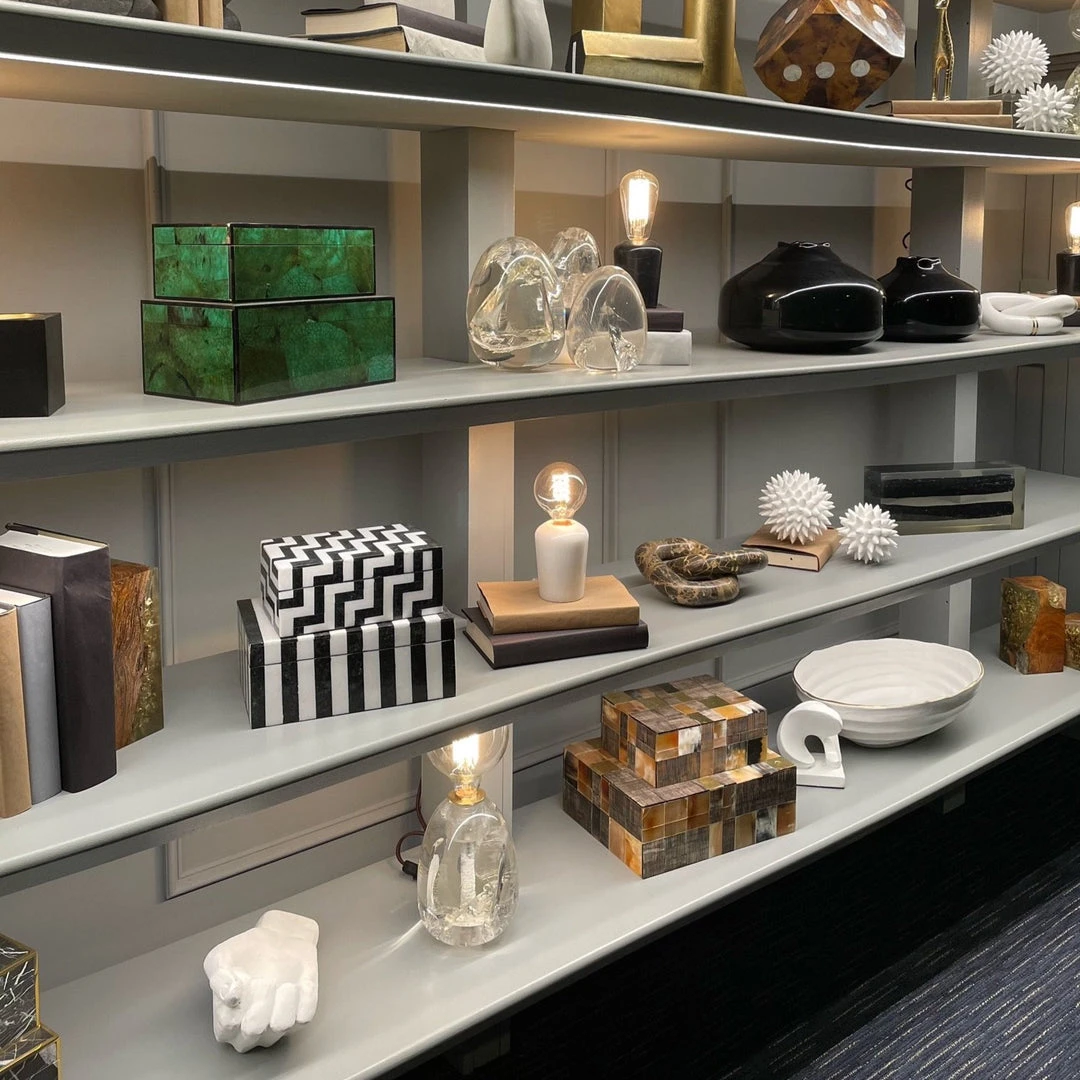 The Escher Box Set in Black and White from Made Goods is a sight to behold. Graphic mismatched patterns make a striking statement with just the right touch of whimsy. The Escher is perfect to adorn bookshelves and tabletops alike.