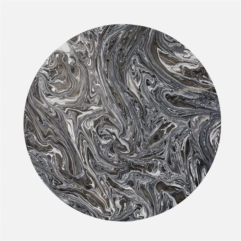 Lacquered resin is hand-painted using a graceful swirling motion to create the Giovanni Entry Table in Black Swirl Lacquered Resin from Made Goods. The marbleized pattern that covers the surface of this entry table makes a statement in entryways, small dining spaces and breakfast nooks. *Variation to be expected.