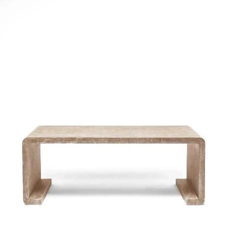 The Made Goods Gustav Coffee Table in warm silver features a beautiful waterfall design. The modern coffee table is covered and finished with a faux waxed linen creating an overall luxurious effect. Use this cocktail table as a living room coffee table for maximum style. The neutral coloring on the Gustav coffee table works well with any design.