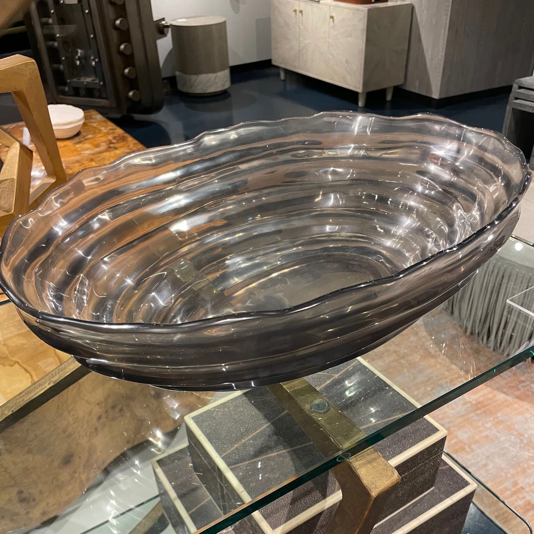 The large, round-shaped Hetty Bowl in Smoke e from Made Goods delivers decorative functionality. Imagine this lovely translucent resin container, filled with lemons and limes, on your kitchen island or filled with your favorite flowers on your cocktail table.