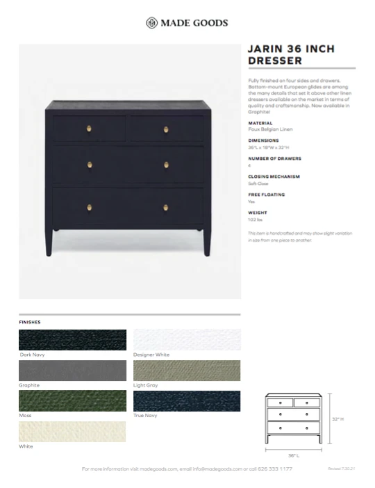 Be the first to review “Made Goods Jarin 36″ Dresser Graphite Faux Belgian Linen” Cancel reply
