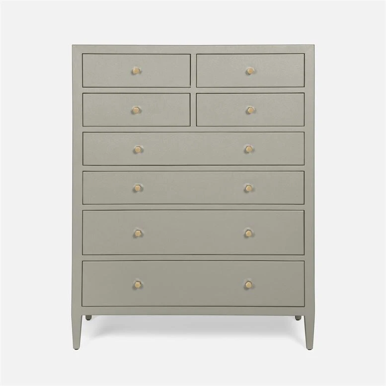 | Materials | Light Gray Belgian Linen; 8 Drawers; Brass Hardware |