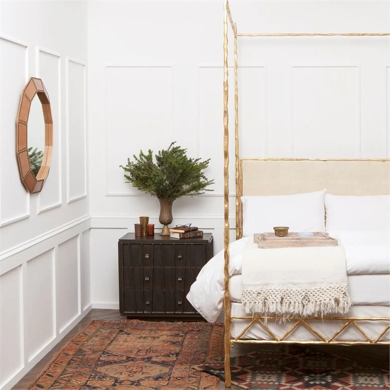 The blocky silhouette and off-kilter details of the Lorenz Double Nightstand from Made Goods are inspired by the Brutalism movement of the ’60s. Add character and depth to the bedroom with this dramatic piece. Pair the Lorenz with a modern bed for a complementary look.