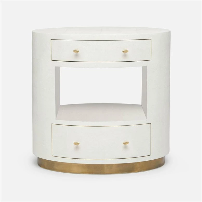 SKU: made-goods-6657586266160 Categories: Bedroom, Brands, Chests & Nightstands, Chests & Nightstands, Furniture, Made Goods, New, New Arrivals, Side Tables, Tables Tags: Faux shagreen, Furniture, Gold, Made goods, Made goods nightstand, Nightstand, Oval nightstand, White