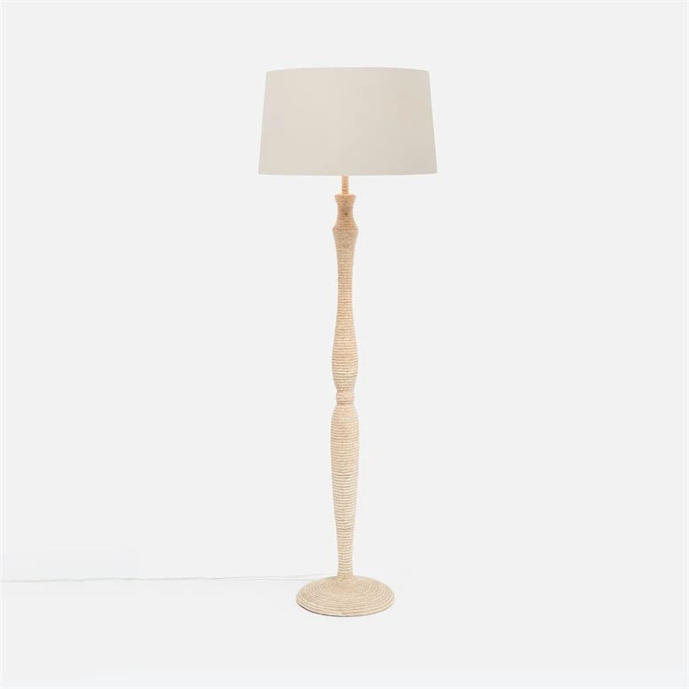 Two sizes of natural hand-strung coco beads are wrapped in tight circles around the Barlow Floor Lamp from Made Goods. The textural feel of this graceful floor lamp results in a striking, organic effect. The Barlow is perfect for the bedroom, entryway, or living room. Partner with the Barlow Table Lamp in the collection for the complete look.
