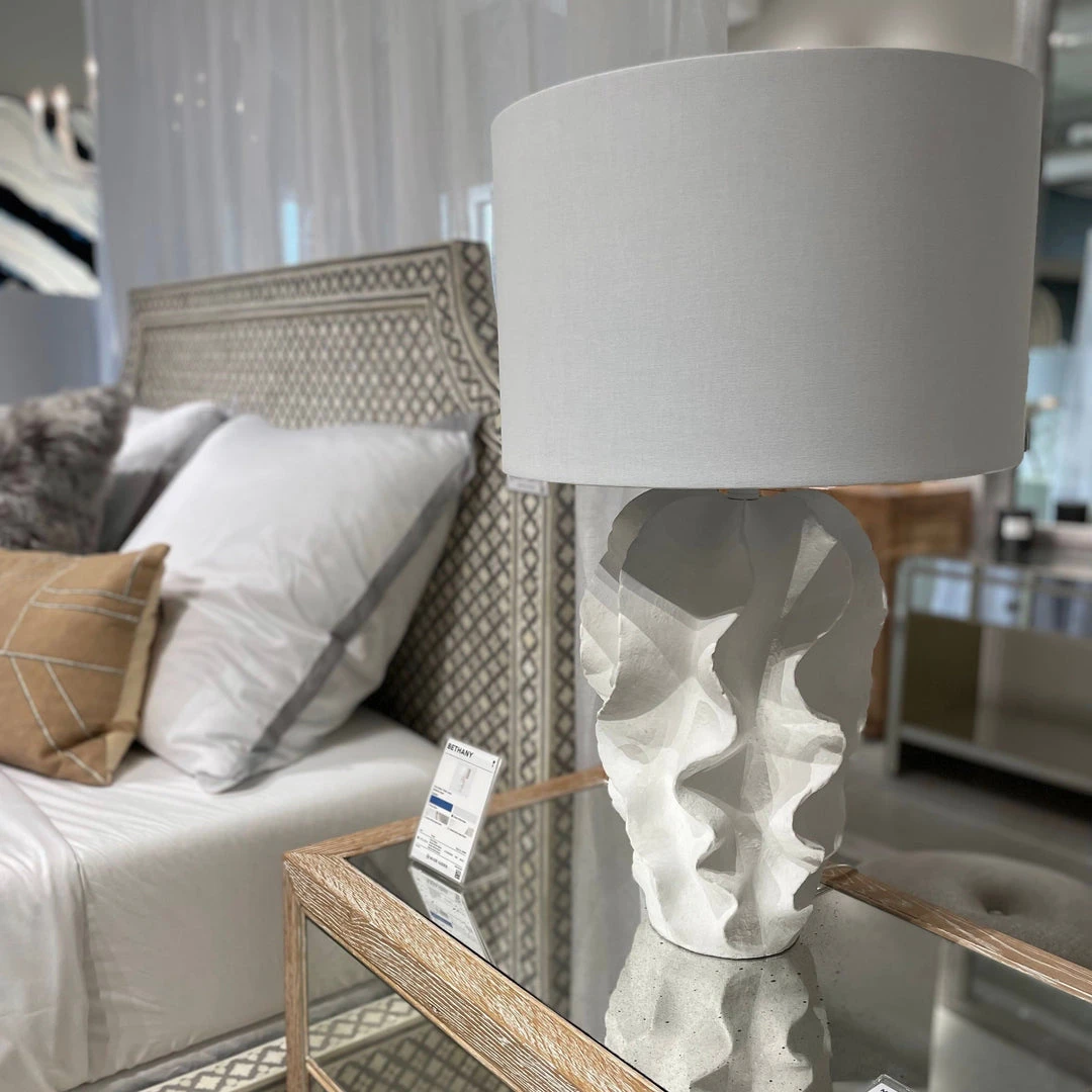 Undulating curves of mold-cast textured white resin soften the shape of the Bethany Lamp from Made Goods. Topped with a linen shade, the overall look is pure elegance. Illuminate any area by placing this beauty on a console, buffet or nightstand.Â