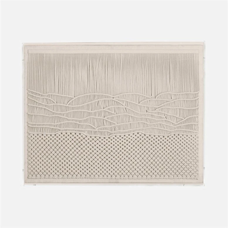From meticulously woven macrame to wavy strands of tightly wrapped fabric, the Hanovi Wall Art in Large from Made Goods features spectacular handcrafted details. This simple but dramatic, neutral artwork is the ideal piece to grace any wall of your home. The rectangle shape wall decor is an immediate conversation piece.