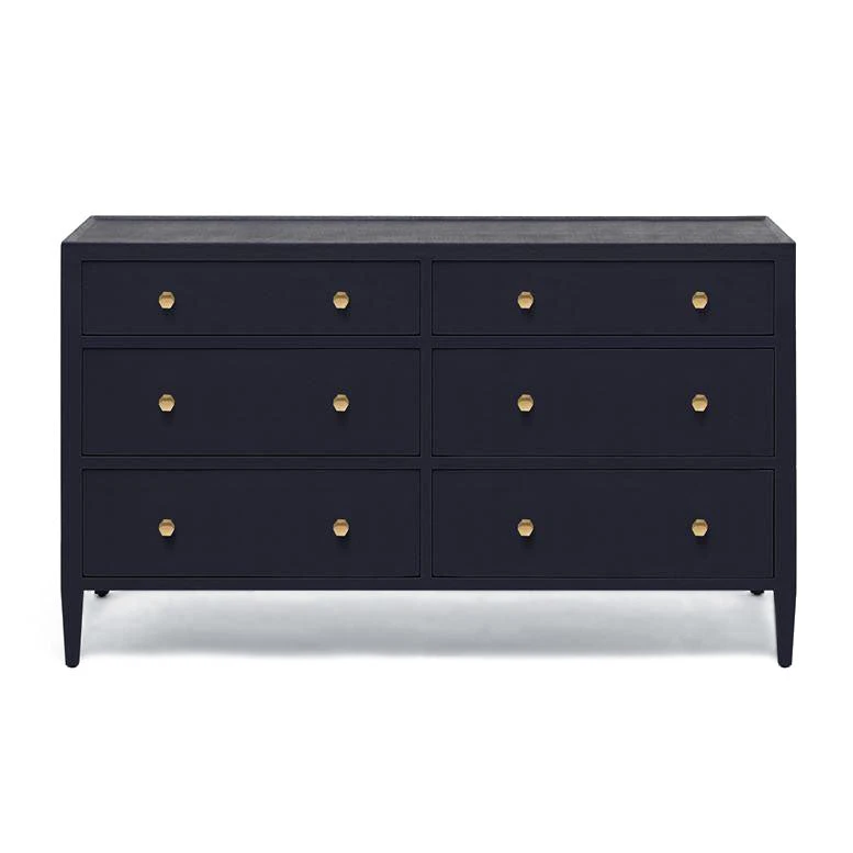 | Materials | Dark Navy Faux Belgian Linen; Six Drawers; Brass Knobs |