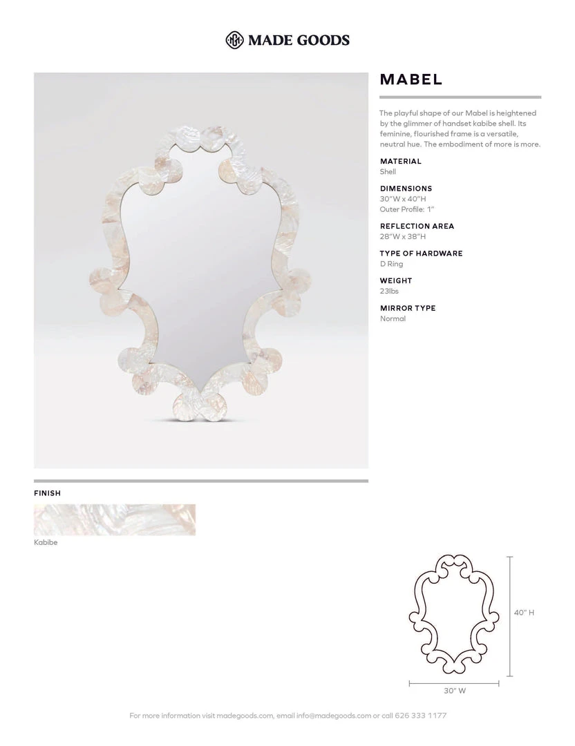 Made Goods Mabel Wall Mirror in Kabibe Shell is nature inspired and reflects an artistically designed frame. This contemporary oval frame is a chic example of decorative mirrors crafted from beautiful, natural materials. Use as bathroom mirrors or bedroom mirrors to add sophisticated nuance to your home.
