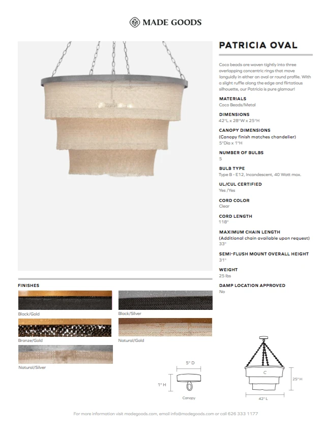 SKU: made-goods-6582711484464 Categories: Brands, Chandeliers, Chandeliers, Dining Room, Kitchen & Dining, Lighting, Made Goods, Made Goods, New, New Arrivals Tags: Instock, Lighting, Made goods chandelier, Made Goods Chandeliers, Made goods lighting, May2021, Oval chandelier, Patricia