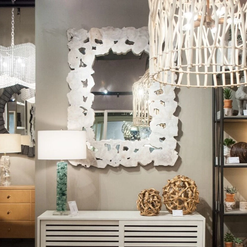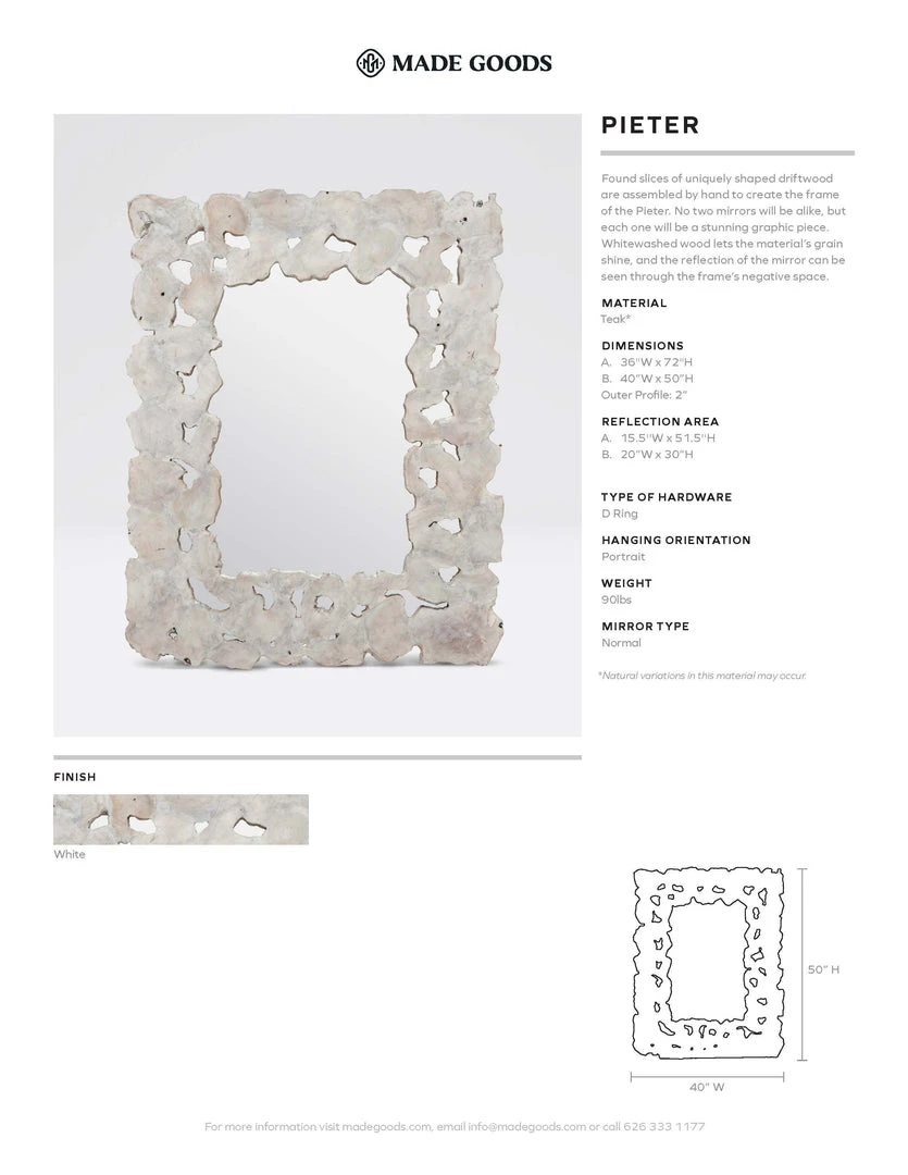 Made Goods Pieter Wall Mirror in White Teak Wood is truly a one of a kind masterpiece in home decor! Crafted from pieces of whitewashed driftwood, this nature inspired wall accessory is destined to hang in casual, contemporary homes. Wall mirrors like the rectangle designed Pieter can be used as bar mirrors, vanity mirrors or bedroom mirrors.