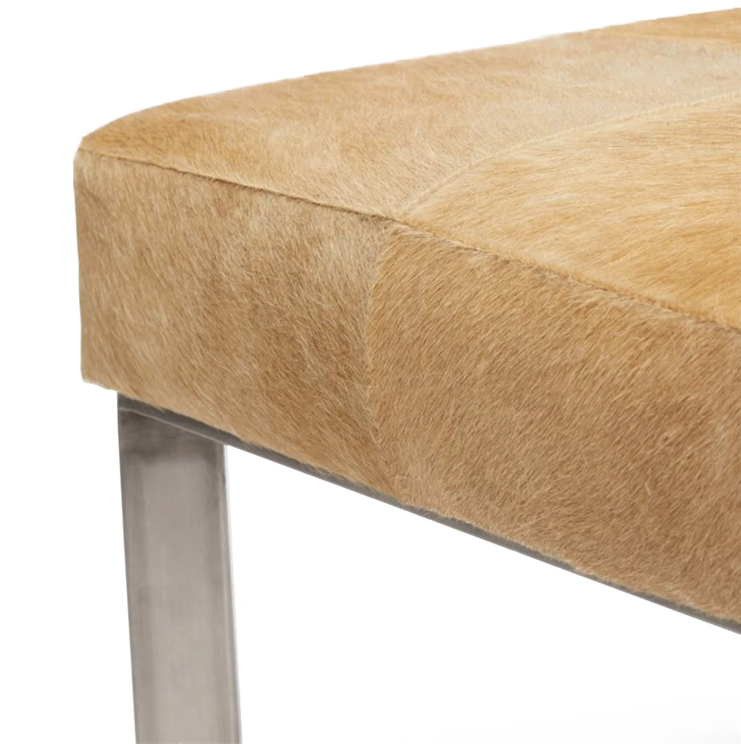 The Roger Single Bench in Beige Cowhide from Made Goods brings a modern feel with its high-end appearance. The hair on hide cushion rests on top of a silver metal base adding the perfect amount of jazz to any space. Benches like the Roger Single Bench in Beige are the ideal additions to any room in the home or office. This item is handcrafted and may show a slight variation in size from one piece to another. *Natural variation to be expected.