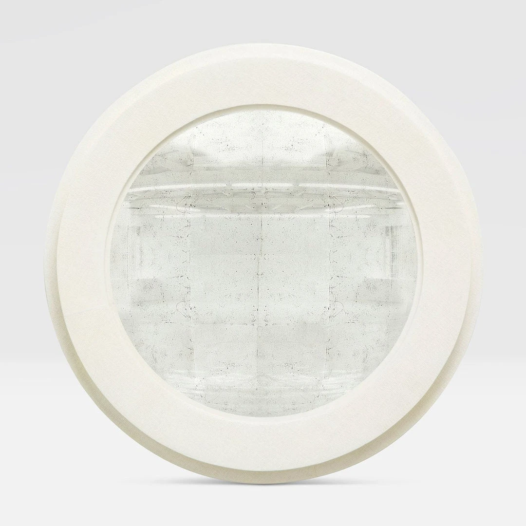 The classic porthole shape of our Suzette Mirror in Pristine from Made Goods is elevated with a number of thoughtful, expertly crafted details. The two-tier frame is finished in raffia and borders a convex mirror-silver antiqued panels to create the eglomise effect. Its larger size makes the Suzette a perfect piece to hang above a console or fireplace. The wide, raffia frame has an approximate depth of 3”.