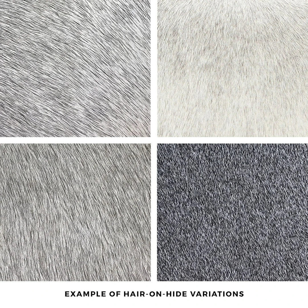 The classic lines of the Terrell Single Nightstand in Gray from Four Hands is fully wrapped in panels of hair-on-hide, accented with gray suede detailing and contrast stitching. Variations to be expected.