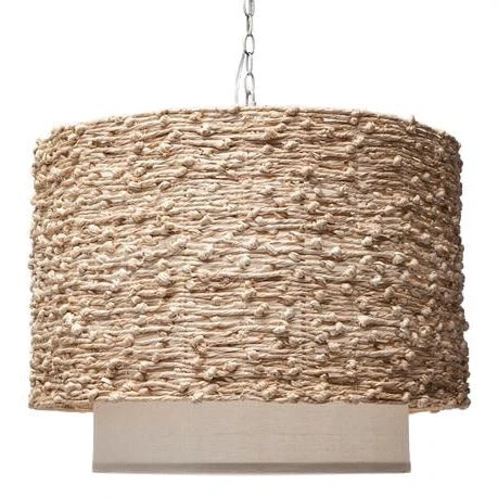 Made Goods Nina Drum in Knotted Seagrass showcases uniquely versatile chandelier lighting that would be ideally used as a nursery chandelier or a kitchen chandelier! Adding an element of modern texture, the exposed knotting on this round lighting creates an interesting design. *Optional linen drop shade.