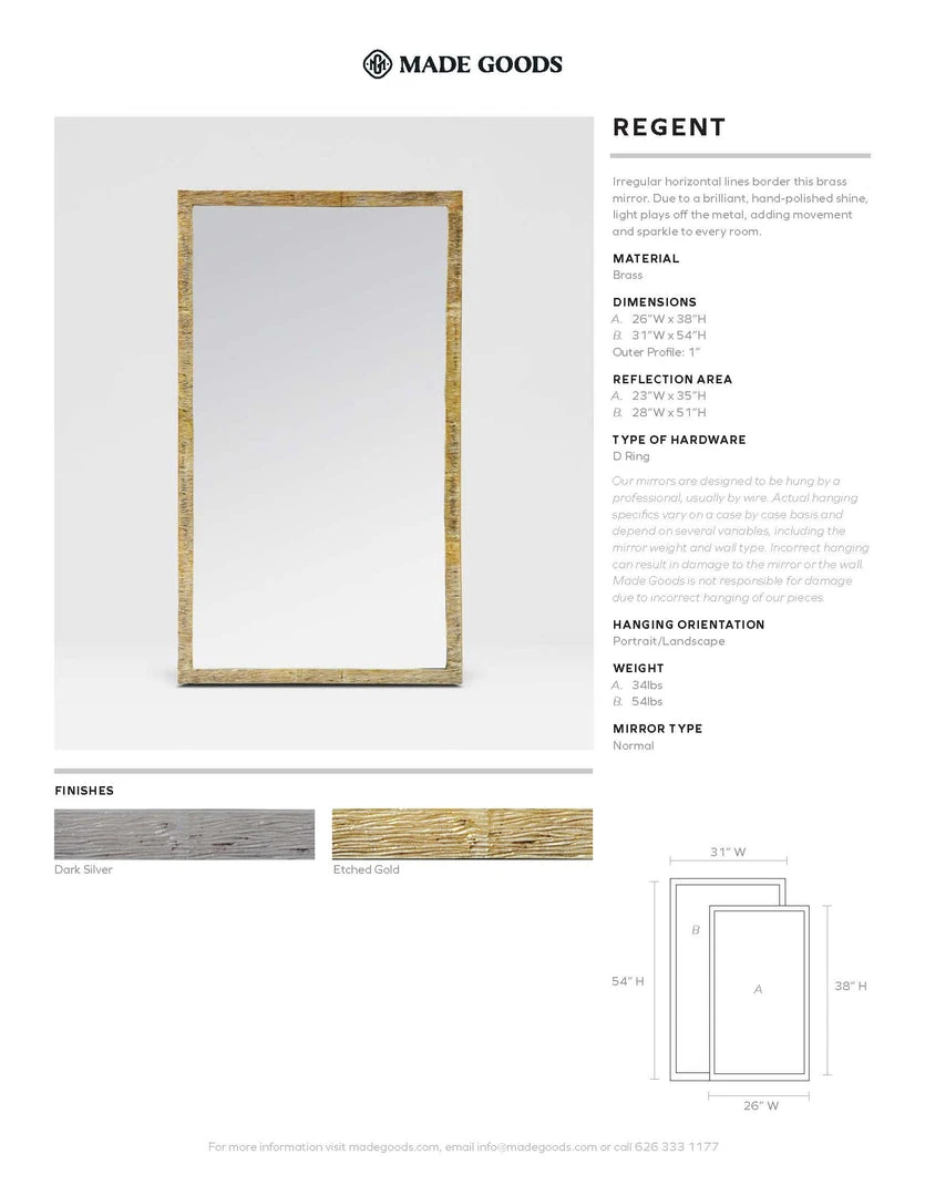 SKU: made-goods-2165831073840 Categories: Brands, Dining Room, Floor Mirrors, Kitchen & Dining, Made Goods, Made Goods, Mirrors, Mirrors, Mirrors & Art, New, New Arrivals, Rectangle Mirrors Tags: Etched gold brass, Horizontal, Metal, Portrait, Rectangle mirror, Rectangular, Regent, Wall mirror