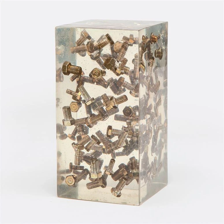 The Simon Object in Large takes decorative objects to new heights of playfulness. An assortment of bolts is set in resin for a piece that ups the fun of a study’s desk, living room’s bookshelf, or foyer’s console. *Sold in a set of two from Made Goods.