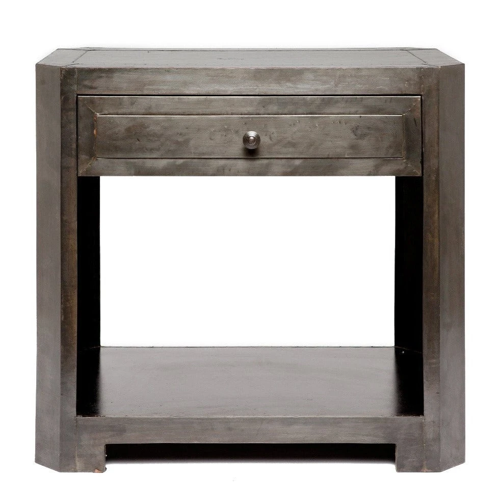 Made Goods Wallace Double Nightstand in Zinc reflects a rustic, contemporary vibe! Finished by hand, this 1 drawer bedside table juxtaposes the sleek lines of a rectangle with soft curves. Offering endless possibilities, side tables like the Wallace work beautifully as a sofa side table, creating a stylish ambiance to any space.