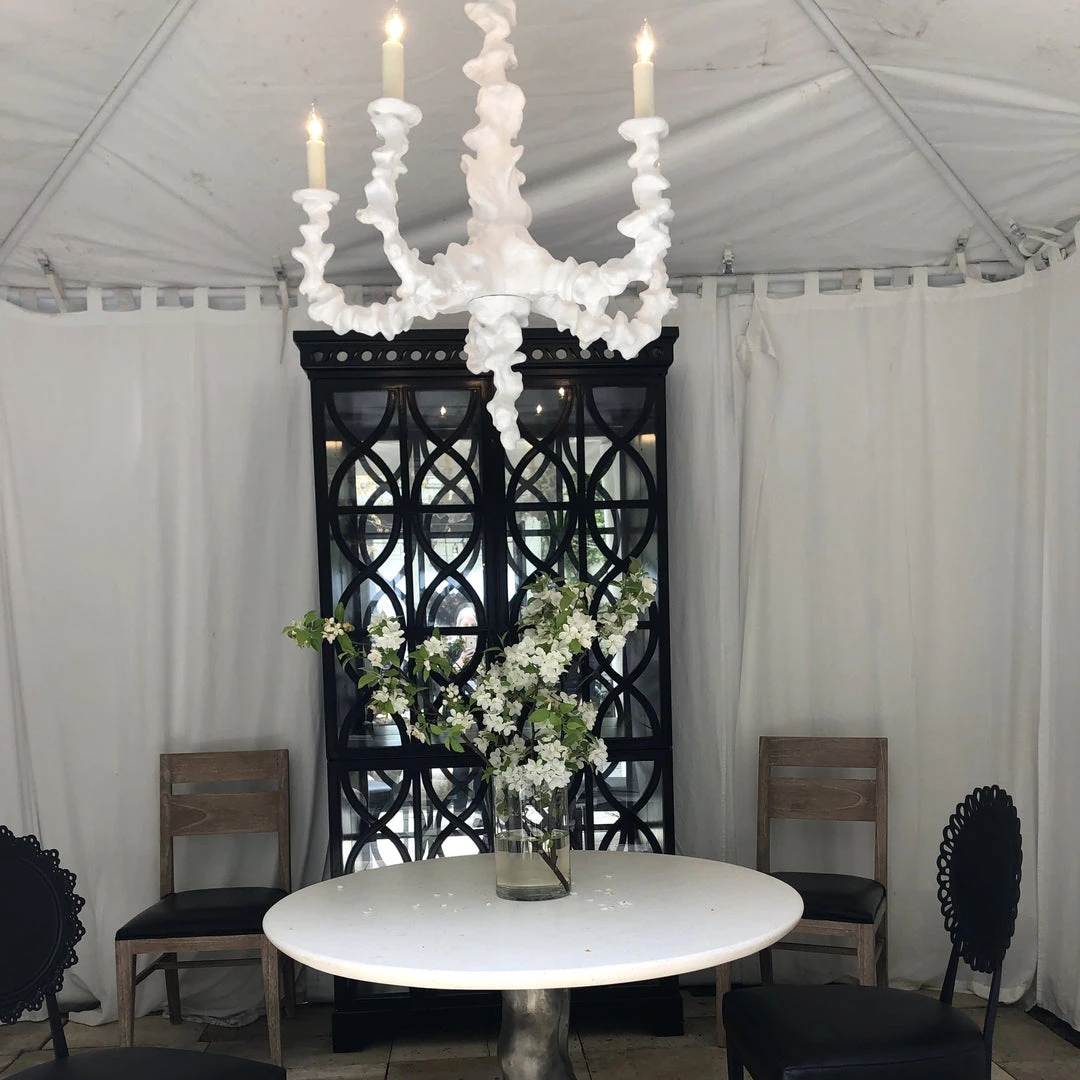 Create a chic ambiance while delivering a luxe touch to a room with the Klemm Chandelier in Frost White from Oly Studio. This striking chandelier is crafted from the frost white resin and designed with a unique shape. The Klemm makes a dramatic statement in entryways, dining rooms, and living spaces alike.