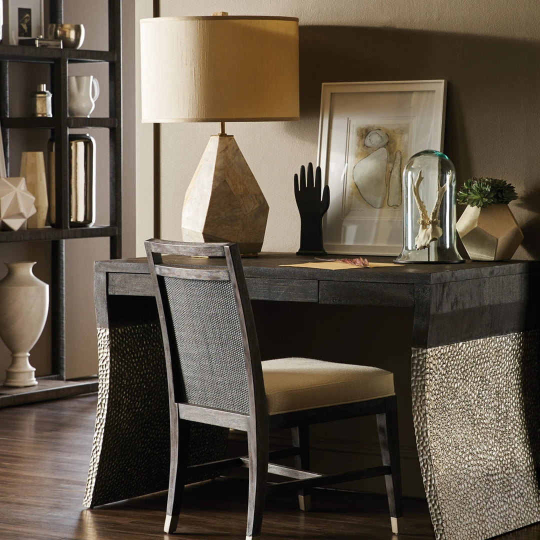 The Aurora Table Lamp from Palecek features a marble base geometrically shaped with an antique gold finish metal cap and base. Topped with a cream silk round drum shade and matching marble finial, the Aurora is from the Kirk Nix Collection made exclusively for Palecek. *Marble is a natural material and will vary in color and grain.
