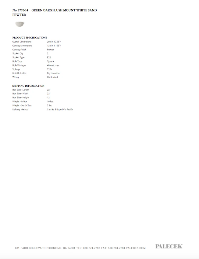 Be the first to review “Palecek Green Oaks Flush Mount Whitesand New Arrivals” Cancel reply