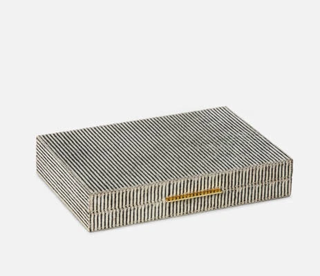 Luxury date night is now a thing. Impress your guest with the Bailey Backgammon Game from Pigeon and Poodle. The Brown Candy Stripe hair-on-hide pattern looks chic on your desk or coffee table. Open the box to find it finished in leather, with horn and bone game pieces. Pop open a bottle of your favorite champagne and see whether skill or luck is really how to win the game.