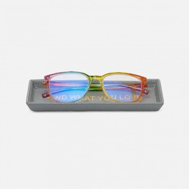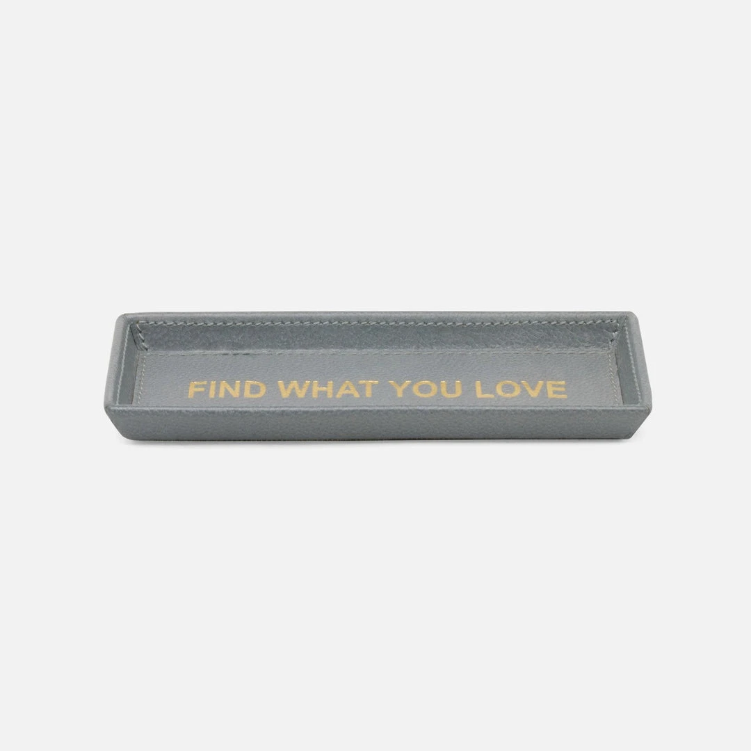 Lighthearted and luxurious, the Decorah Tray in Dark Gray Leather from Pigeon and Poodle is the perfect valet or catch-all tray for consoles, desktops, and vanities alike. Fully wrapped in dark gray full-grain leather and accented with handcrafted stitching, the Decorah is the perfect touch of whimsy for your home.